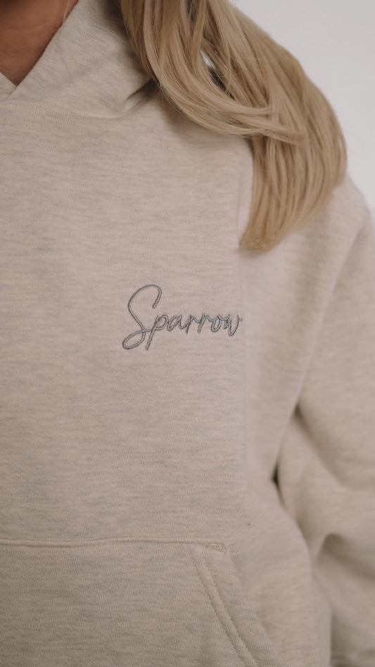 Britt Balyn: Embroidered Oatmeal Cotton Fleece Hoodie