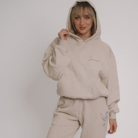 Britt Balyn: Embroidered Oatmeal Cotton Fleece Sweat Set