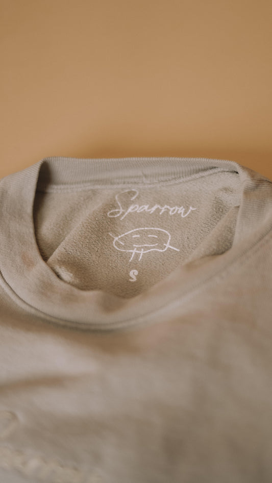 Britt Balyn: Embroidered Sage Sparrow Cropped Crewneck